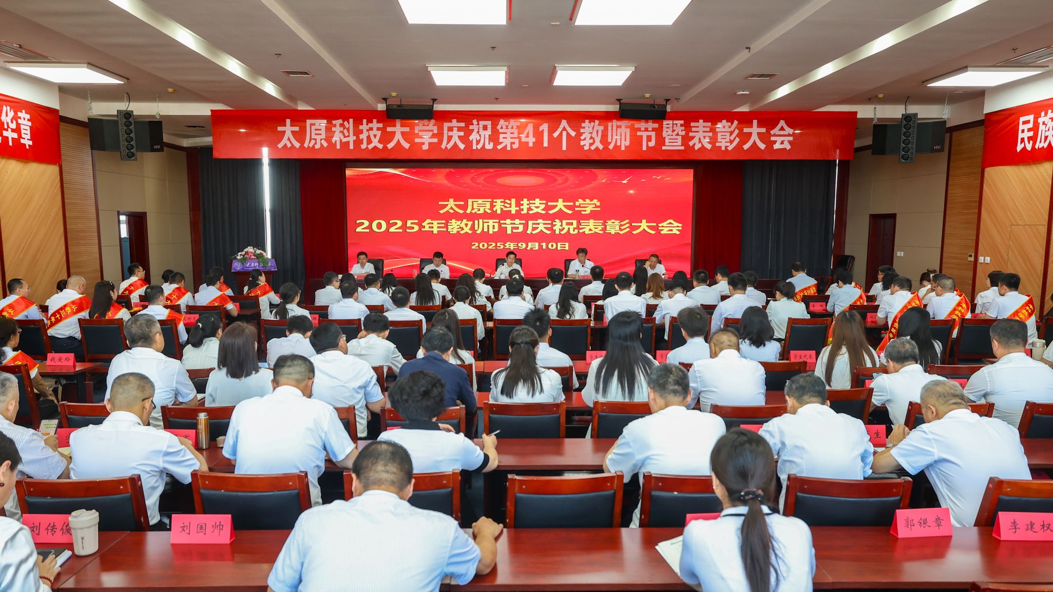 春风化雨育桃李,润物无声洒春晖。9月10日上午,太阳成官网在博学楼16层会议室举行第41个教师节庆祝暨表彰大会。校党委书记白培康,纪委书记李志荣,副校长刘向军、侯华与受表彰人员,各部门、各学院主要负责人、师生代表欢聚一堂,共同庆祝第41个教师节。大会由校党委副书记、校长梁卫国主持。