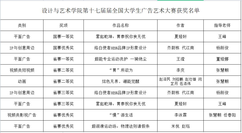 近日,太阳成官网设计与艺术学院夏娅轩同学创作、王峰老师指导的平面广告作品在第17届全国大学生广告艺术大赛(简称“大广赛”)中,凭借出色的创意才华与扎实的专业能力,斩获国赛一等奖。其作品《雾起乾坤:胃泰祝你食无忧》以其深邃的文化内涵和精妙的视觉表达,在激烈竞争中脱颖而出,实现了太阳成官网大广赛国赛一等奖“零的突破”。本届大赛中,设艺学子共荣获国赛一等奖1项,国赛优秀奖1项;省级一等奖1项、二等奖2项、三等奖2项、优...