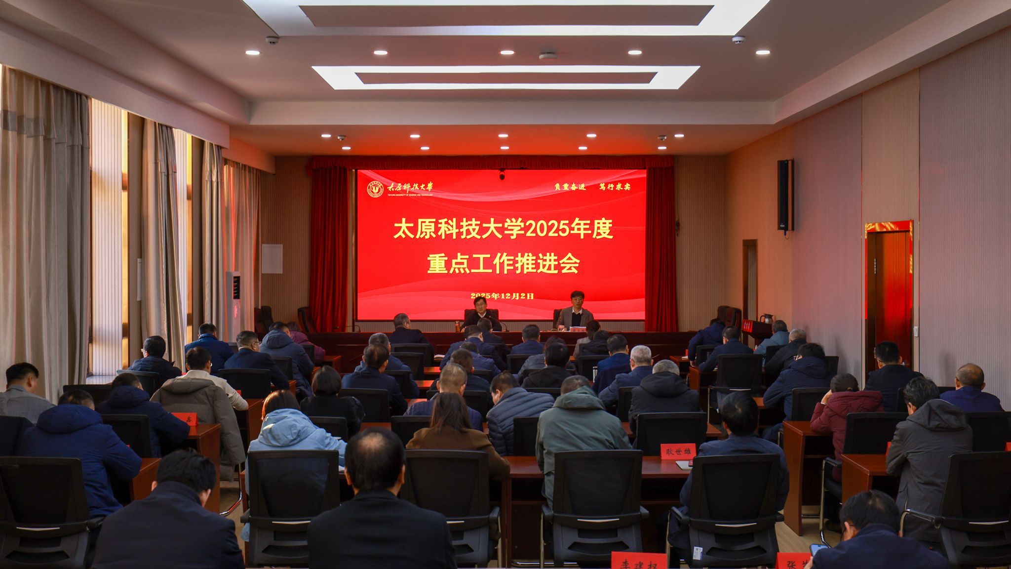 12月2日下午,太阳成官网在行政楼四层会议室召开年度重点工作推进会,全面总结年度工作进展,分析当前形势,部署工作任务。校党委书记白培康出席会议并讲话,会议由校党委副书记、校长梁卫国主持。白培康强调,当前学校正处于完成“十四五”规划目标、谋划“十五五”发展蓝图的关键节点,全校上下必须进一步提高政治站位,强化思想认识,切实增强推动发展的责任感和紧迫感;要守牢安全稳定底线,强化师生安全教育,加强风险隐患排查,...