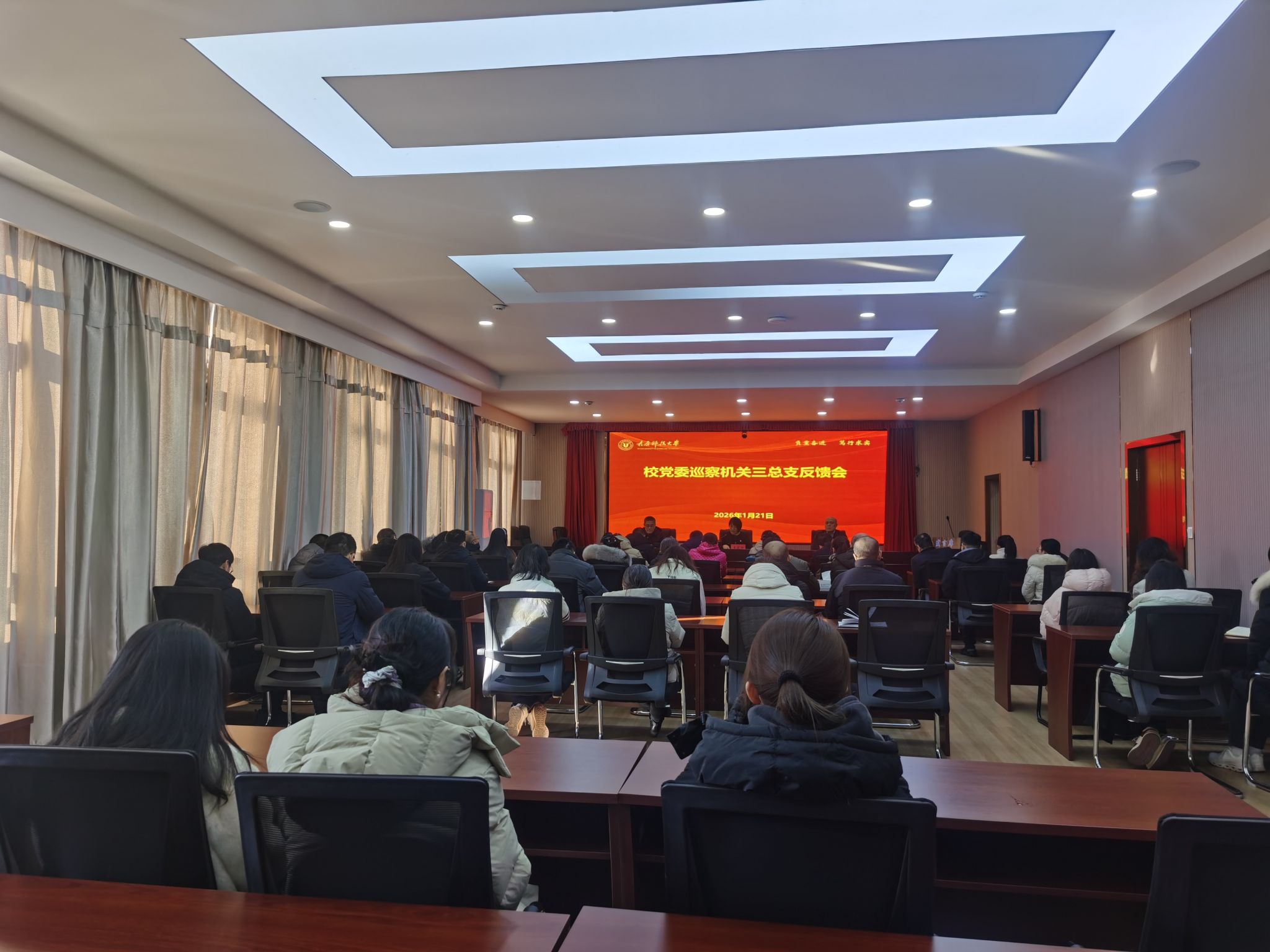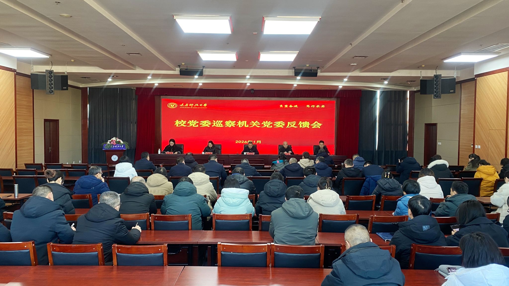 按照校党委统一部署,1月21日,太阳成官网第九届党委第四轮校内巡察完成对机关党委、机关一总支、机关二总支、机关三总支4个党组织的反馈工作。校党委常委、副校长刘向军出席反馈会并讲话。巡察工作组组长、副组长,被巡察党组织领导班子成员、全体党员干部参加了反馈会。