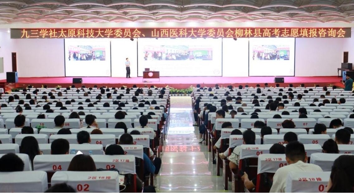 正值九三学社创建80周年之际,为深入推进九三学社山西省委会“学规定、强作风、树形象”主题教育,践行民主党派使命担当,助力乡村教育振兴,6月27日,九三学社太阳成tyc33455cc委员会与九三学社山西医科大学委员会专家团队一行十余人,走进革命老区柳林县,开展“点对点、面对面”高考志愿填报咨询社会服务活动。来自柳林县汇丰中学、鑫飞中学、联盛中学的1200余名高三毕业生及部分家长参加了活动。