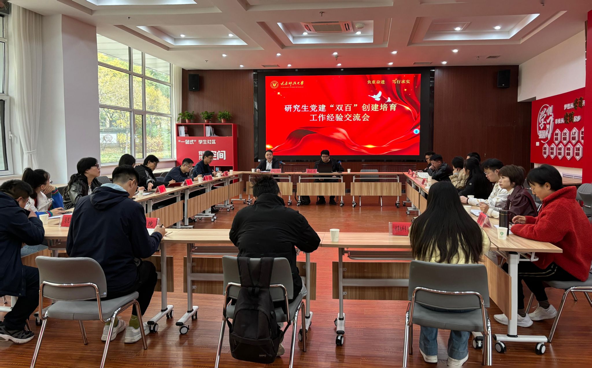 校党委组织部与研究生工作部介绍了学校党建双创工作的开展情况,各党支部书记围绕创建工作中的重点难点展开热烈讨论,与会同志一致认为必须以规范化建设夯实组织基础、以项目化思维推进党建工作创新,主动对标先进、查找差距,深入挖掘典型案例,持续推动党建与研究生学业发展、科研攻关、社会服务同频共振,充分发挥党员先锋模范辐射带头作用,推动研究生党建工作与人才培养深度融合。