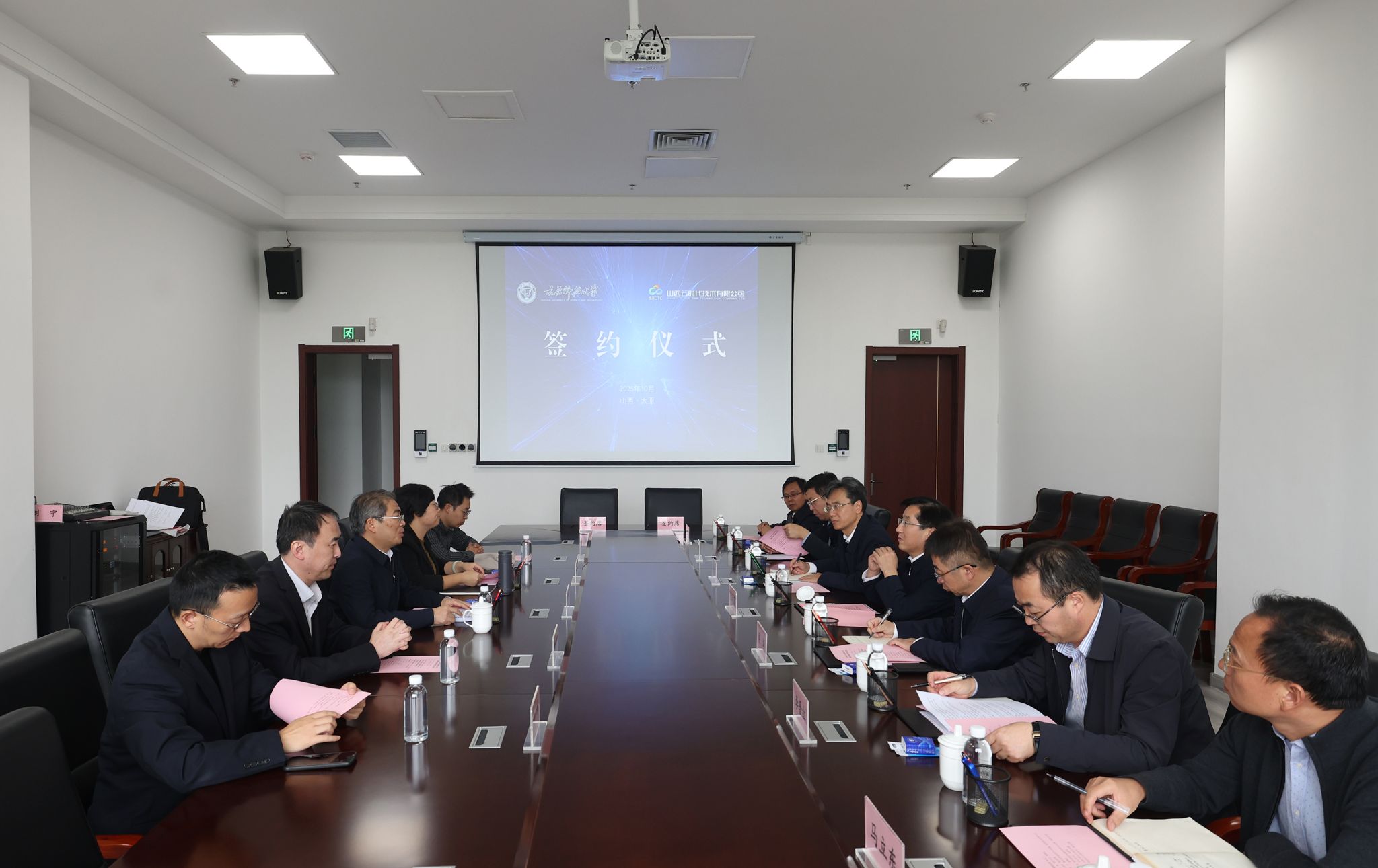 校党委办公室、校长办公室、科学技术研究院、教育信息技术中心、机械工程学院、电子信息工程学院、计算机科学与技术学院以及继续教育学院相关负责人,山西云时代数字化转型促进中心、数字基础设施建设运营中心、先进计算分公司、研究院公司党委等部门负责人共同参加签约仪式。