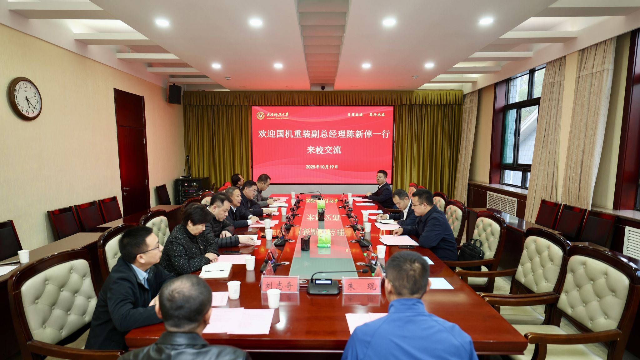 10月19日,国机重型装备集团股份有限公司副总经理陈新倬一行七人来校调研交流,就校企合作进行交流座谈。会前,校党委副书记、校长梁卫国会见了陈新倬一行。校党委常委、副校长刘向军出席座谈会。