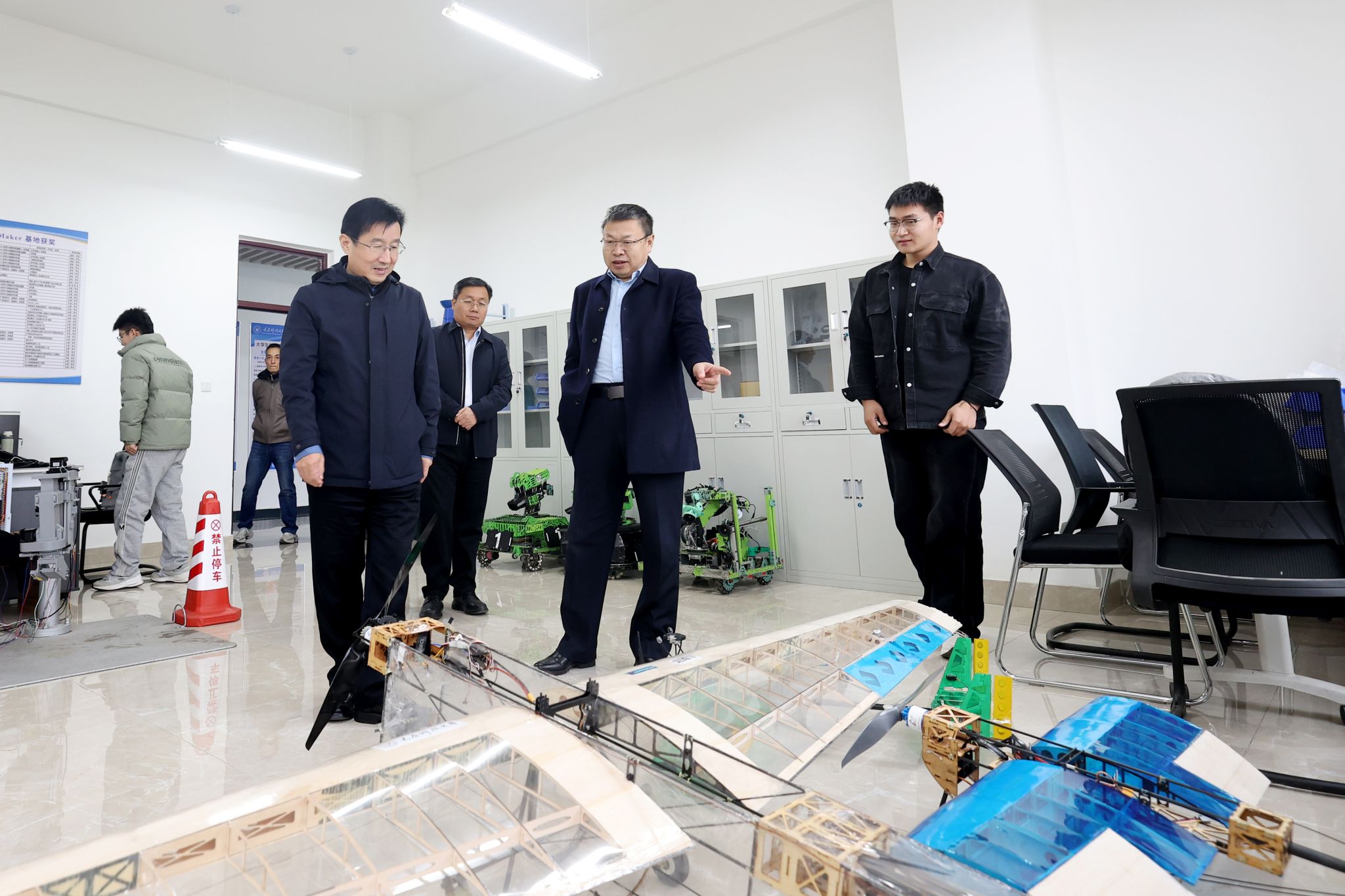 在创新创业学院,白培康认真听取了学院关于平台建设、项目孵化、竞赛组织等方面的工作汇报,并与正在备赛和开展实验的学生团队、指导教师详细交流。他充分肯定了学院在激发学生创新创业潜能等方面取得的成效,并着重指出,学校的创新创业教育要“接地气”,要鼓励和引导学生深入企业一线开展真研究、解决真问题;要主动对接相关企业党组织,与企业开展党建联建工作,将党建联建作为深化校企合作的重要纽带和有力抓手,积极推动校企共组导师团队、共设研发课题,将企业的“需求清单”转化为我们师生攻关的“课题清单”和“成果清单”,让创新成果能够切实服务于地方经济发展;要依托功能性党支部组织凝聚团队成员,集思广益、攻坚克难,激发创新创业团队的蓬勃生机,为国家创新驱动发展战略作出更大贡献。