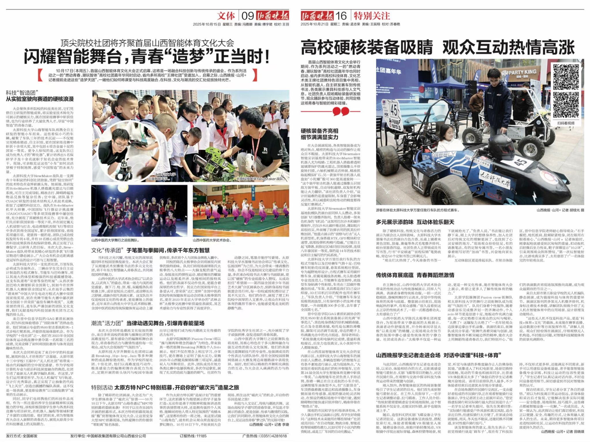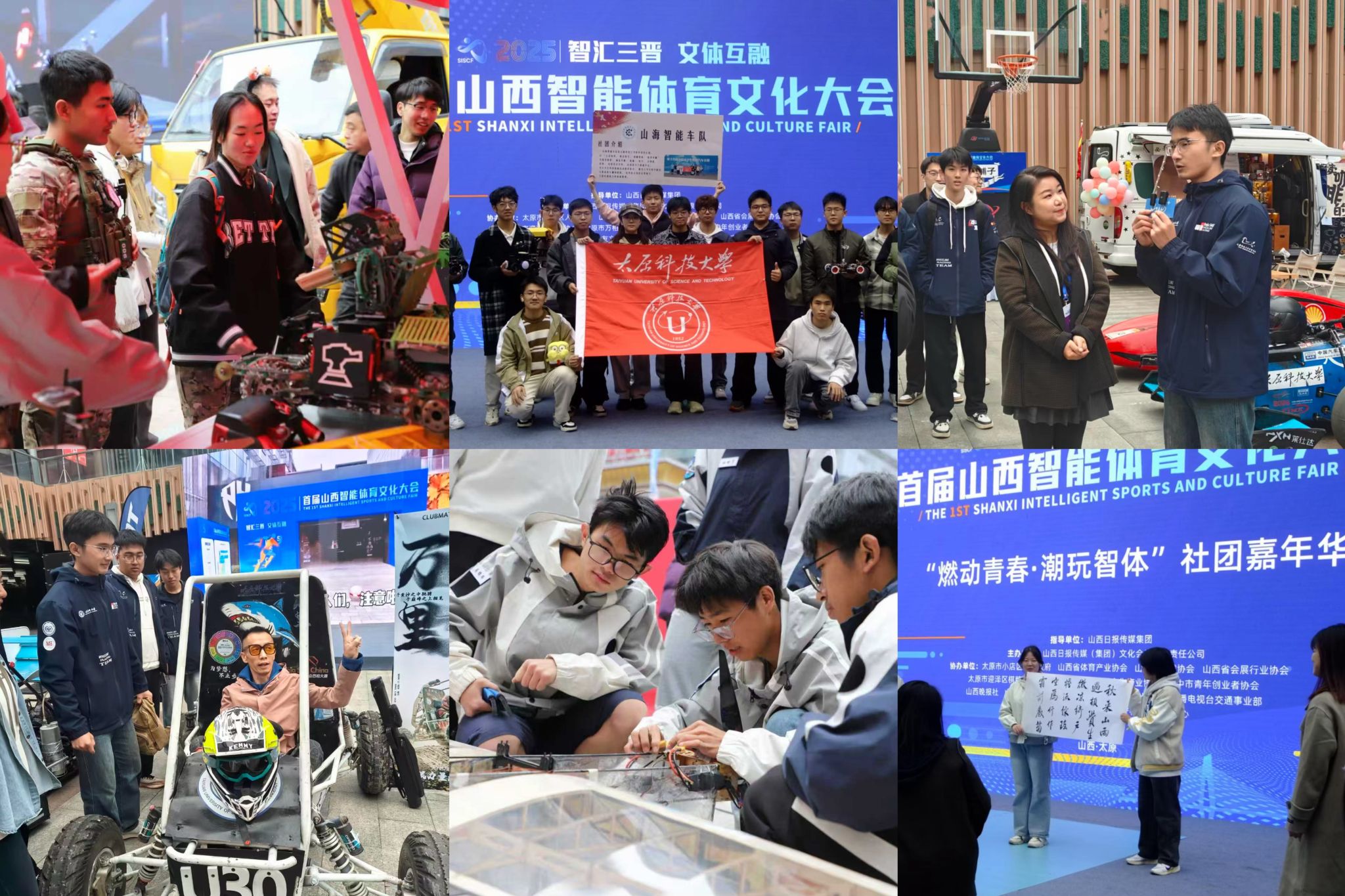 近日,首届山西智能体育文化大会在太原国贸T6馆成功举办。太阳成官网6个优秀社团携特色成果受邀参展,以丰富多元的展示形式,尽显科大学子在科技创新、文化传承等领域的蓬勃青春朝气,成为大会现场最亮眼的青春风景线。