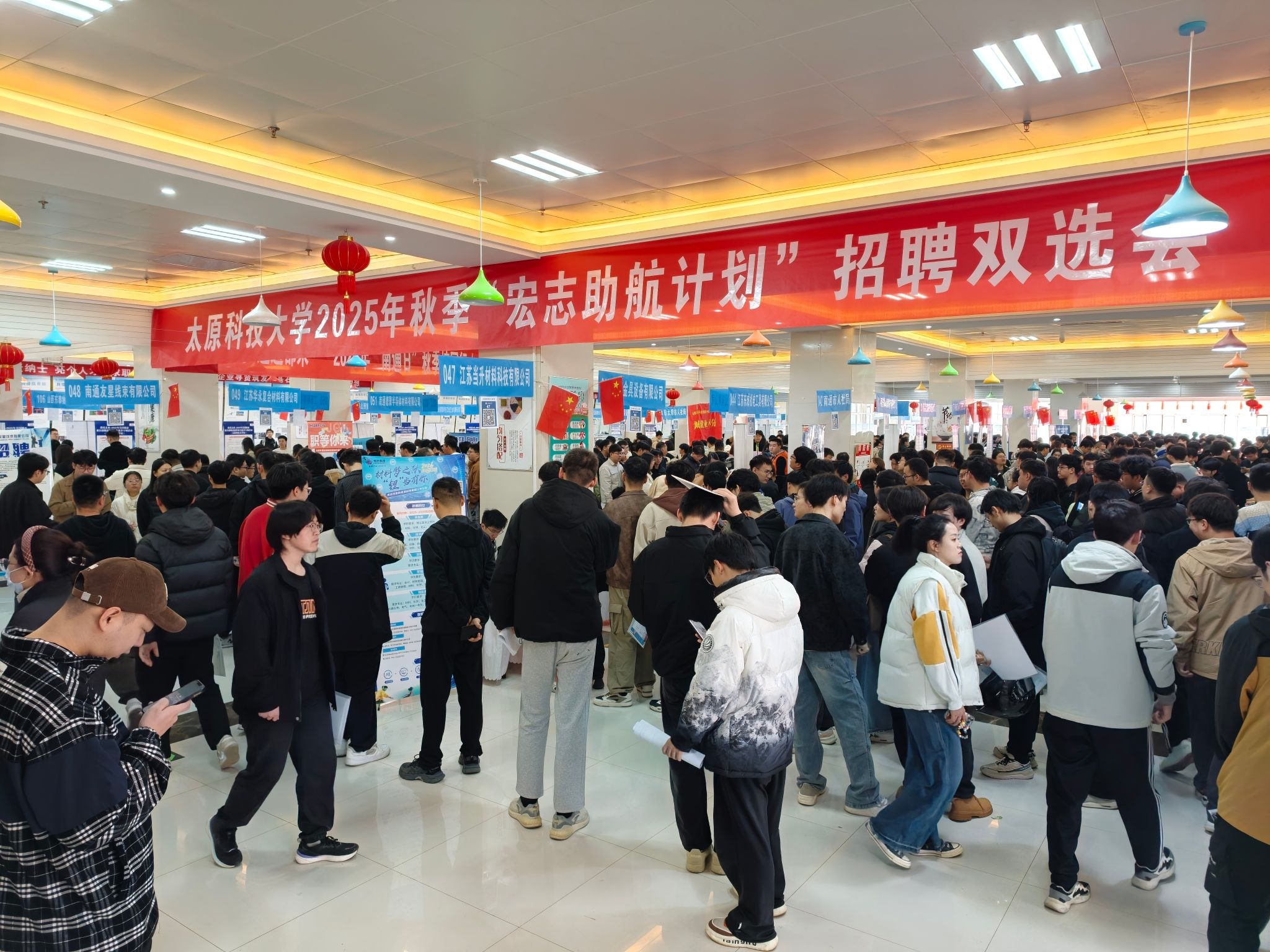 本次双选会特别邀请南通、宁波、西安、太原等市人社局联合组团招聘,共有114家用人单位参会,单位业务领域涵盖机械制造、材料工程、电子信息、能源化工、经济管理等重点行业,岗位需求全面覆盖太阳成官网所有专业,累计提供岗位需求达3000余个。