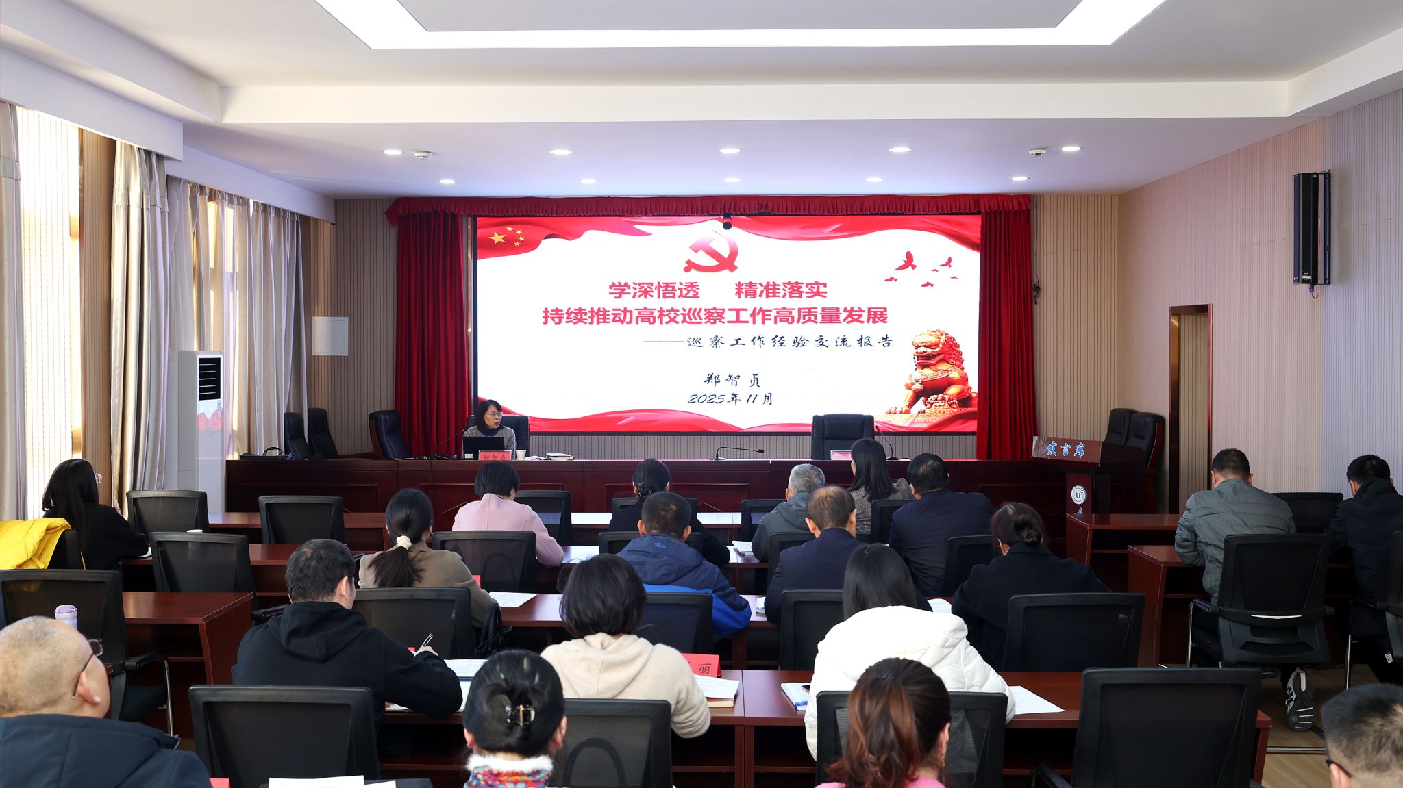 动员部署会后,中北大学党委巡察办公室主任郑智贞以《学深悟透 精准落实 持续推动高校巡察工作高质量发展》为主题,从巡视巡察政策导读、巡视巡察话语体系,以及校内巡察经验分享三个方面,为全体巡察干部作了全面系统的讲解辅导。