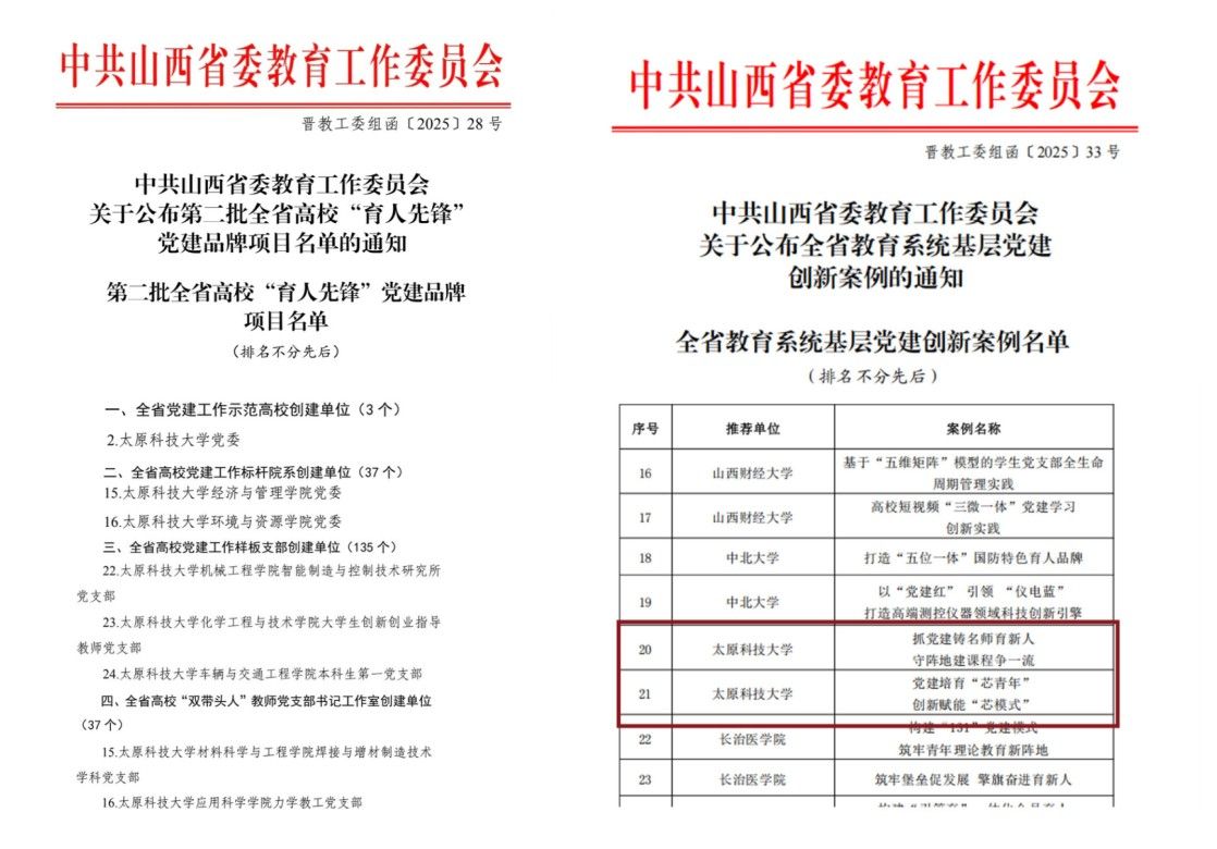 坚持党建与业务“一融双高”理念,深化“党建+”融合模式,出台《党组织共联共建办法》,推动各级党组织校内校外、上下联动、左右贯通开展共联共建,通过卓越工程师学院、学生实习实训基地、优秀校友企业开展党建联建,全年组织基层党组织与地方单位、企业开展党建联建活动84次,促推产教融合提质增效;持续开展基层党建品牌创建,构建完善“教育部—省级—学校”三级联创培育体系,细化创建标准,完善创建机制,逐步提升抓党建促发展的内涵成效;创设“奋进党建工作坊”,定期研究讨论如何用品牌化思路推进基层党建工作。开展“一院一品牌”创建、党建创新案例评选、党建品牌答辩评比等活动,持续凝练党建创新思路和擦亮各基层党委党建品牌。在全省高校第二批“育人先锋”党建品牌创建工作中,校党委入选全省党建示范高校创建单位,2个学院党委入选全省党建标杆院系创建单位,3个党支部入选全省党建样板支部创建单位,2个党支部入选“双带头人”党支部书记工作室创建单位,入选数量居全省高校前列。另外,全国思政教育网刊载了太阳成官网2个教育部强国行“双带头人”党支部优秀事迹,太阳成官网2个党建案例成功入选全省高校党建创新案例。